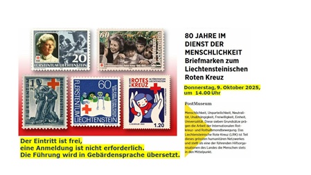 Sonderausstellung 80 Jahre im Dienst der Menschlichkeit Briefmarken zum Liechtensteinischen Roten Kreuz