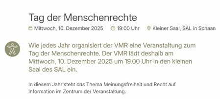 Kosten: Mitglied: CHF 5.00 Gast: CHF 15.00
