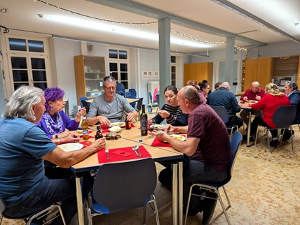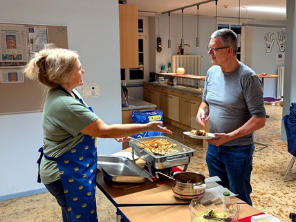 Heidi Oehri vom Gehörlosen Kulturverein Liechtenstein ist Gemeinschaft und Vereinskultur ein grosses Anliegen. Sie wollte einen Einblick in die Liechtensteiner Küche geben und zeigen, was ein typisches Essen in Liechtenstein ist. Auch einige Gäste aus der Ukraine kamen an diesem Abend und genossen Käsknöpfli. Leider konnte Martha selber nicht im Clubraum dabei sein. Deshalb kam ihre Kollegin Claudia und erfreute alle mit schmackhaftem Essen.